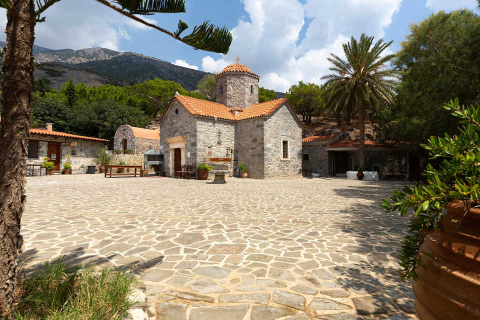 Koudoumas is the only monastery in Crete near the sea, and the pebbly beach is a favorite with bathers and campers. It is one of the most secluded corners of Crete. It's a great place for contemplation, for a quiet swim, and for star gazing at night, where all the velvety heavens are laid out and undiminished by man-made light.