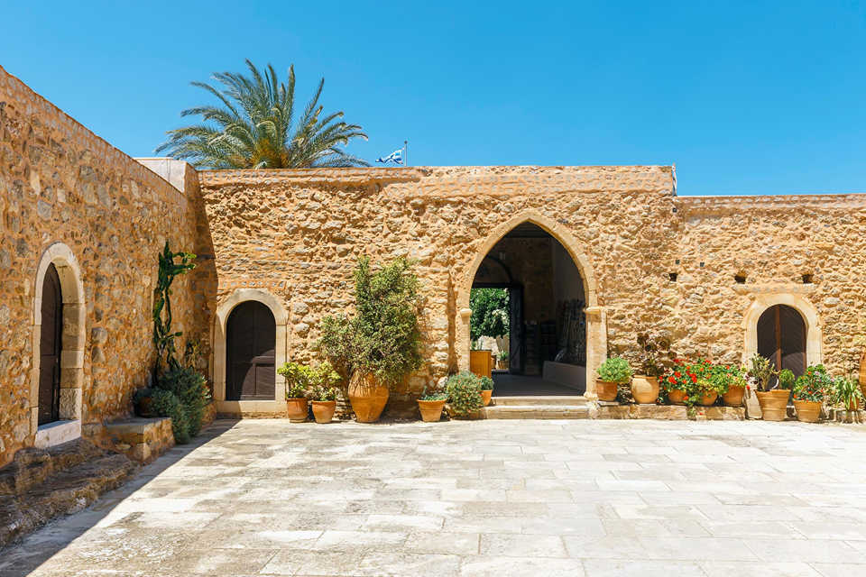 The monastery welcomes overnight visitors. It is served by just 4 monks who live on site, but its abbot, Philotheos Spanoudakis, has been promoting its charms tirelessly. He established the copper engravings museum, and supervises the cultivation of grapes and olives on its extensive land holdings. It produces its own organic wine, raki, and olive oil.
