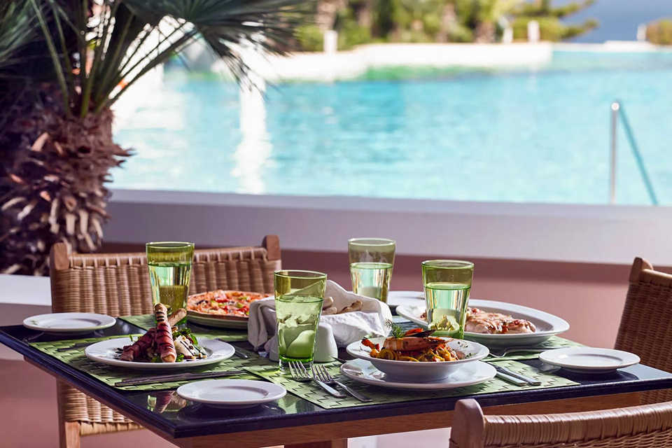 Greek à la carte - Expect the best of Greek dishes with its stylish and inviting décor, high quality and flavourful cuisine, expertly sourced wines and scrumptious desserts. Located beside the infinity pool and overlooking the Mediterranean Sea, it really offers a memorable dining experience.