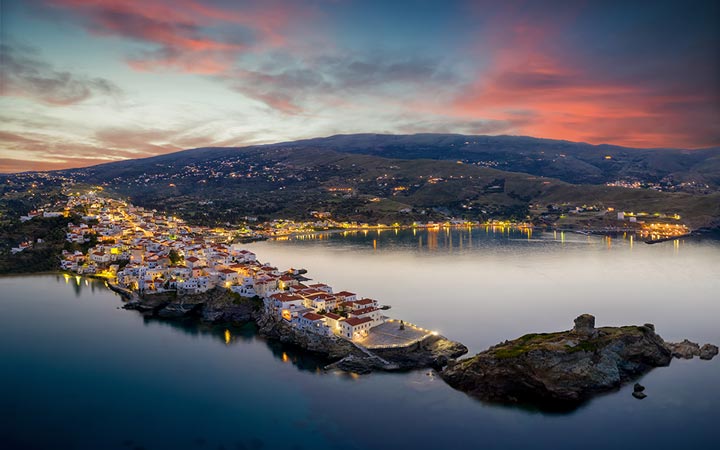Batsi is a medium-sized tourist town which fills up with northern Europeans on budget package tours every summer. It has its fair share of night clubs and beach bars, and it's the place to go on Andros if you're in your 20's and wanting to party a bit. Fortunately for those who favor a slower-paced, quieter type of holiday, Batsi offers that, as well. Batsi has a nice little marina, and, next to that, the town beach, which is a decent and convenient place to swim and sunbathe.