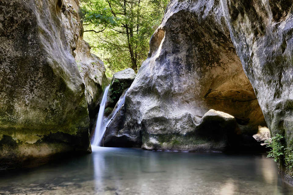 A well-marked hiking path leads you to the two falls of Karlovassi. The first one is smaller, while the second one is much higher, but still not all that high at 5m. You need to climb a flight of wooden steps to reach its top. There is a rope guide which you can use to cross the river. You can also swim at the pool at the foot of the falls.