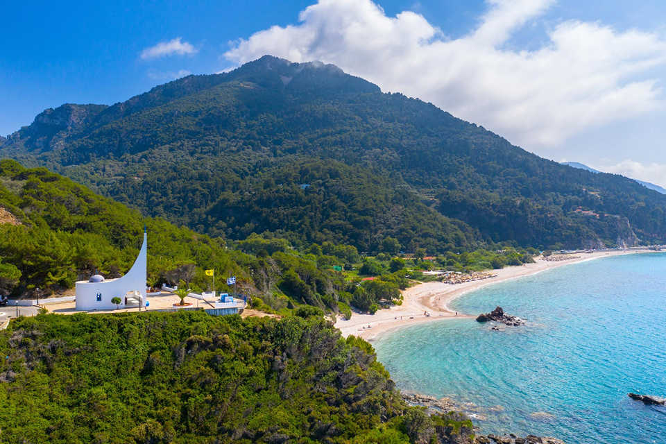 Potokaki’s big advantage is that it’s next door to Samos airport, which makes it a convenient place to stay for air travelers. 16km southwest of Vathy, 10 further west along the south coast from Psili Ammos, and just west of the port of Pythagorio, this 3km-long stretch of sand is one of the most popular on Samos. Potokaki is a very well organized beach with umbrellas, sun beds, and loads of water sports. Lined with beach bars, restaurants, hotels, and tavernas, the beach is so long that if you walk long enough you’ll find a secluded spot just right for you. Pythagorio is just a few minutes’ walk east.