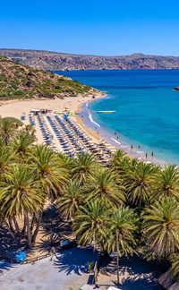 You can't get much further northeast in Crete than the palm forest of Vai. Just 8.5 km from the island's extreme northeast point, this is the largest native palm forest in Europe.