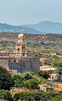 This monastery, one of Crete's most important, was founded in the 15th century in the semi-desert of extreme northeast Crete, about 15 km southwest of Cape Sidero, Crete's extreme northeasterly point