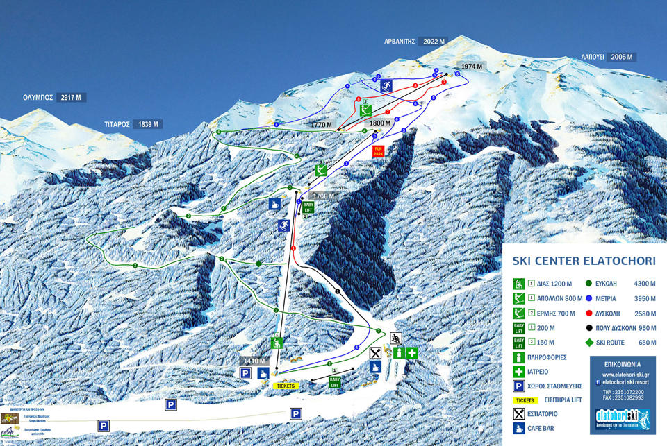 Горнолыжный центр находится в 36 км от города Катерини, 8 км от Элатохори, 128 км от Ларисы, 474 км от Афин и 105 км от Салоник. Подъемник канатно-кресельный (длина 1287 м, с возможностью обслуживания 1200 чел. в час) и один baby lift (длина 130 м, с возможностью обслуживания 600 чел. в час).