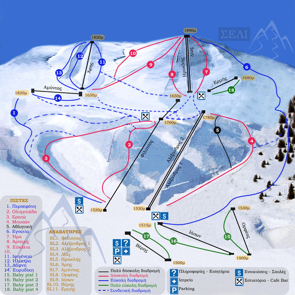 Национальный горнолыжный центр Сели является первым организованным горнолыжным курортом Греции. Он действует с 1934 года, первых национальных состязаний по лыжному спорту.