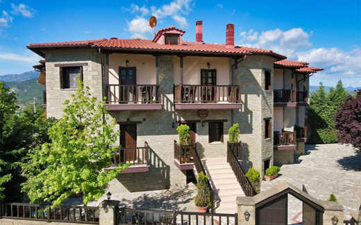 Ксенонас Ириданос расположен по дороге в Метеоры, с восточной стороны въезда в город Каламбака, в районе Агия Триада.