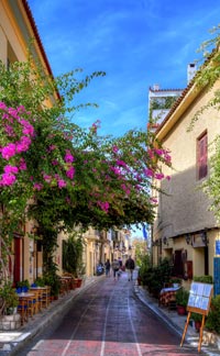 В самом сердце Афин, Плака раскрывается как тихий оазис с историческими улицами, скрытыми площадями и спокойными уголками, затенёнными мимозами и деревьями жакаранды.