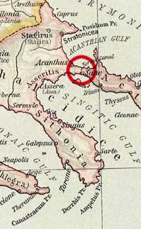 Ущелье вблизи посёлка Неа Рода, где раньше располагались подворья афонских монастырей и средневековые башни.