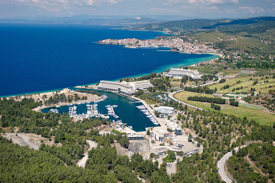 Роскошный отель, входящий в известный гостиничный комплекс Porto Carras Grand Resort. Располагает частной гаванью (самой большой в Северной Греции).